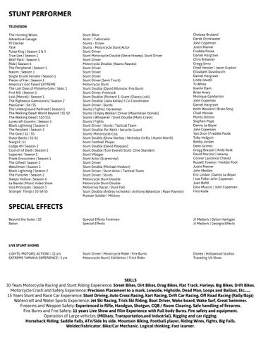 STUNT COORDINATOR / PERFORMER RESUME